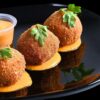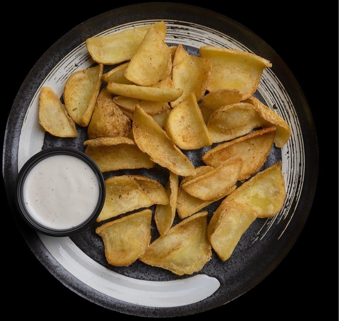 شرائح بطاطس، تقدم مع صلصة الرانش.