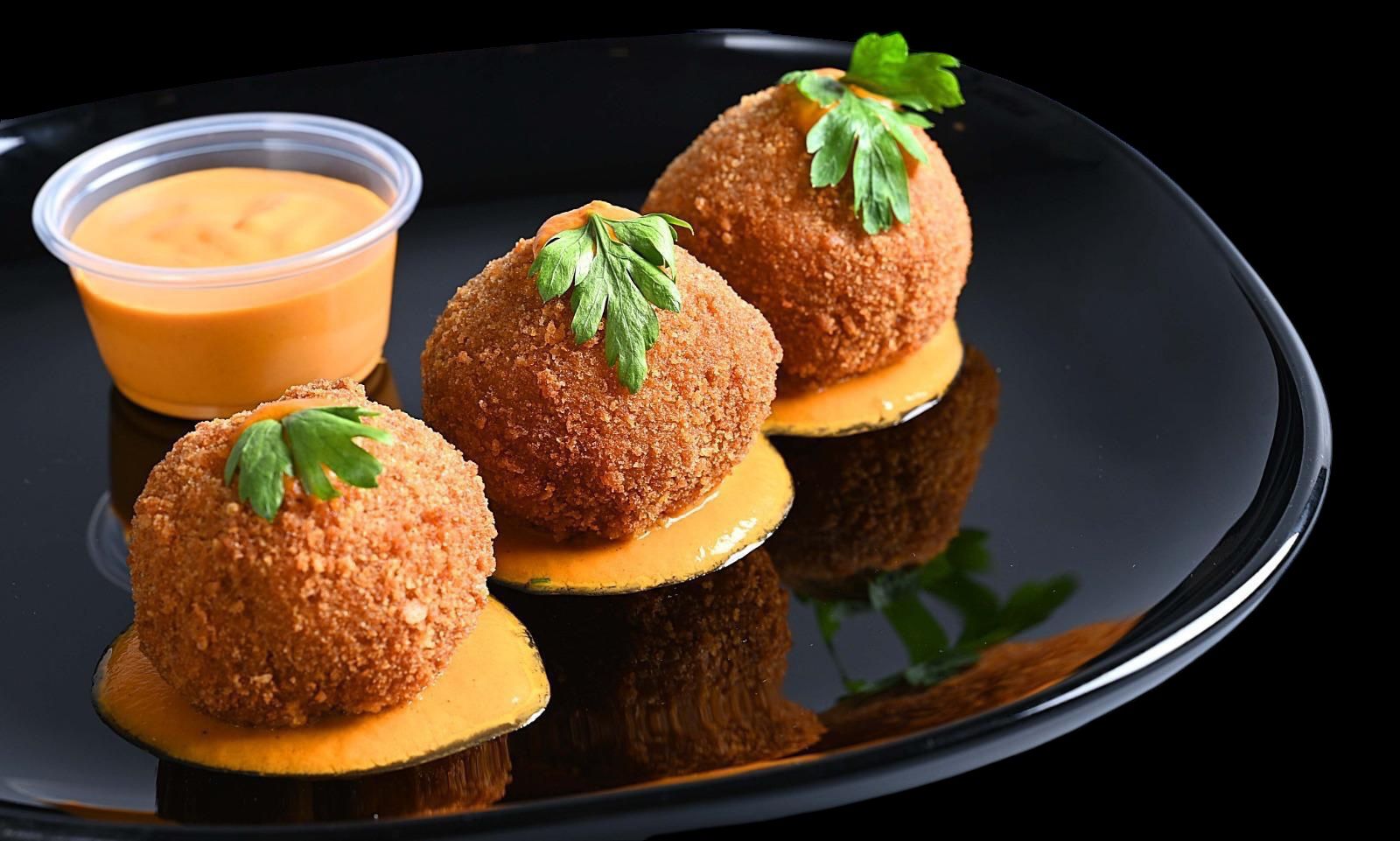 كرة المعكرونة والجبن تقدم مع صلصة خاصة.
